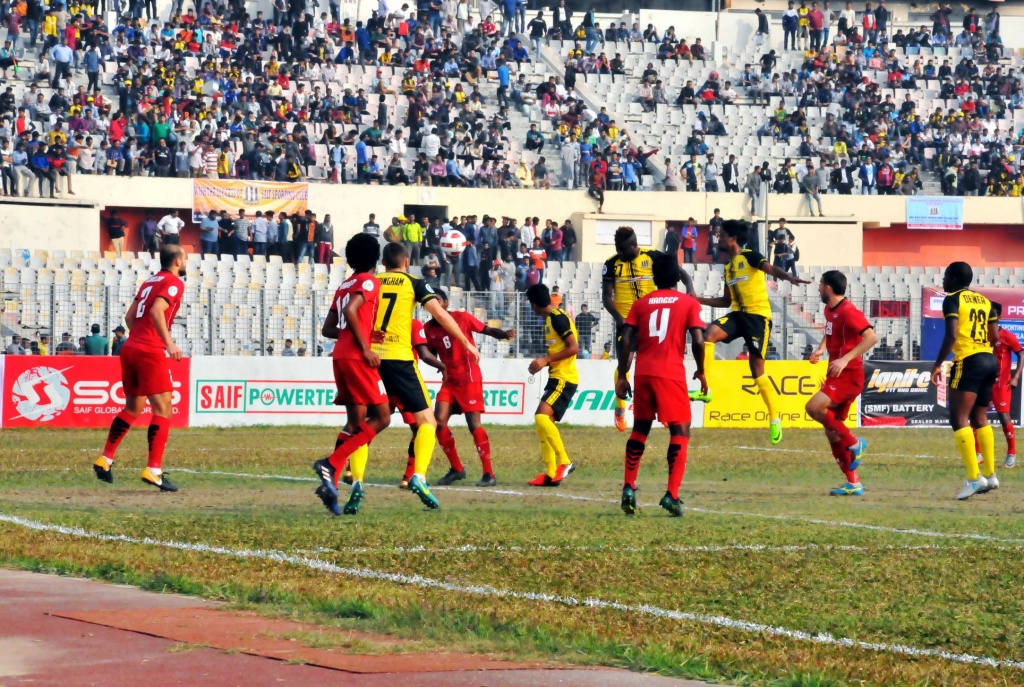 Saif’s woe continued in the 60th minute with Kingsley Chigozie hitting the crosspiece with a fierce sidevolley and William Sherringham hitting the rebound to the substitute goalie Ibrahim Nadheem. The very next minute the woodwork again stood between a goal and Saif with midfielder Md. Abdullah rocking the crosspiece against with curved free kick.