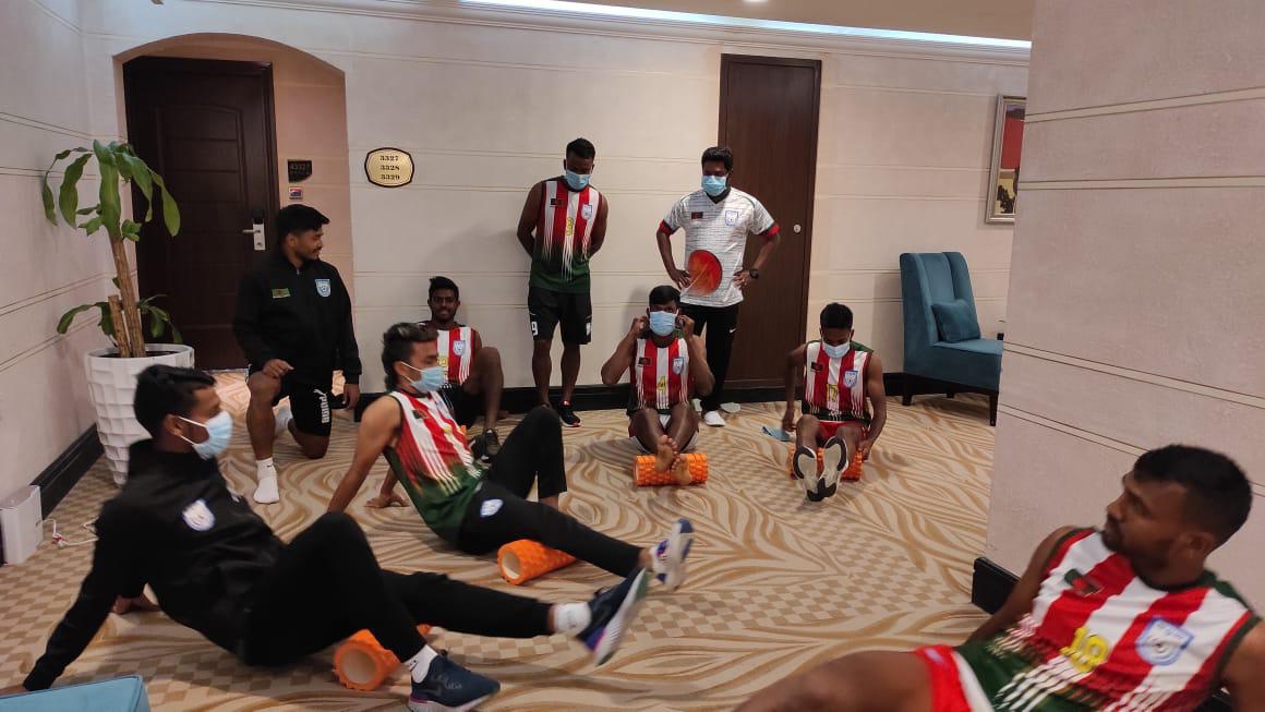 The 32 members of Bangladesh national football team is currently in Qatar on the occasion of the FIFA World Cup Qatar 2022 and AFC Asian Cup China 2023 (Preliminary Joint Round-II). The results of the members have been negative on 28th May 2021.Today, on 29 May 2021, the team held a sketching session at the Hotel Bangladesh in Bangladesh from 10.30 am to 11.00 am and the Bangladesh national football team will hold its first practice session at the Qatar University ground at 4.30 pm.