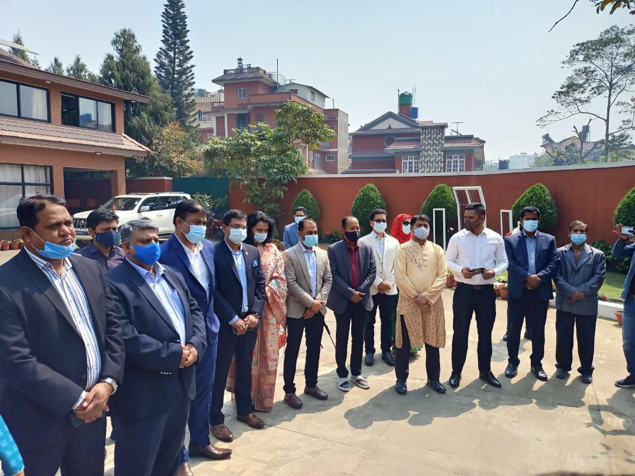 Today BFF General Secretary Md Abu Nayeem Shohag, BFF ExCo Member Mr. Nurul Islam Nuru, Officials of BFF and Officials of Bangladesh National Football Team joined the Celebration of Golden Jubilee (50th Anniversary) of Independence and National Day of Bangladesh at the Embassy of Bangladesh in Kathmandu, Nepal by the invitation of the Ambassador, H.E. Salahuddin Nomana Chowdhury. The embassy officials, Journalists from Bangladesh and Bangladeshi communities in Nepal also attended the program.