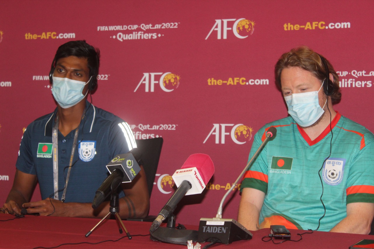 On the occasion of the match of "FIFA World Cup Qatar 2022" and "AFC Asian Cup China 2023 (Preliminary Joint Round-2)" between Bangladesh and Oman, the official press conference of the Bangladesh National Football Team was held on 14 June 2021 at 3.30 pm Qatar time (6.30 pm Bangladesh time). Bangladesh national football team head coach Jamie Day and Bangladesh national football team captain Tapu Barman interacted with media personnel in the press conference.