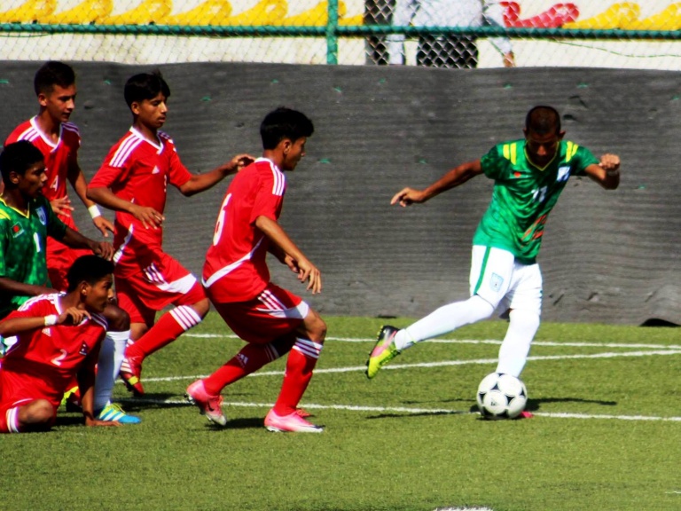 Nepal went 3-0 up in the 64th minute with Bangladesh defender Najmul Biswas scoring an own goal failing to clear a cross of Nepalese midfielder Karlos Bakariya.