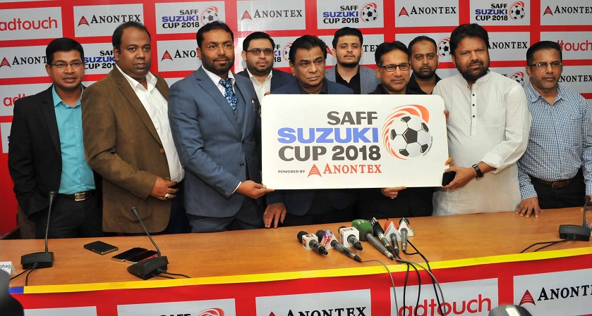 BFF president Kazi Salahuddin, the chief guest of the event, unveiled the logo of SAFF Suzuki Cup 2018.