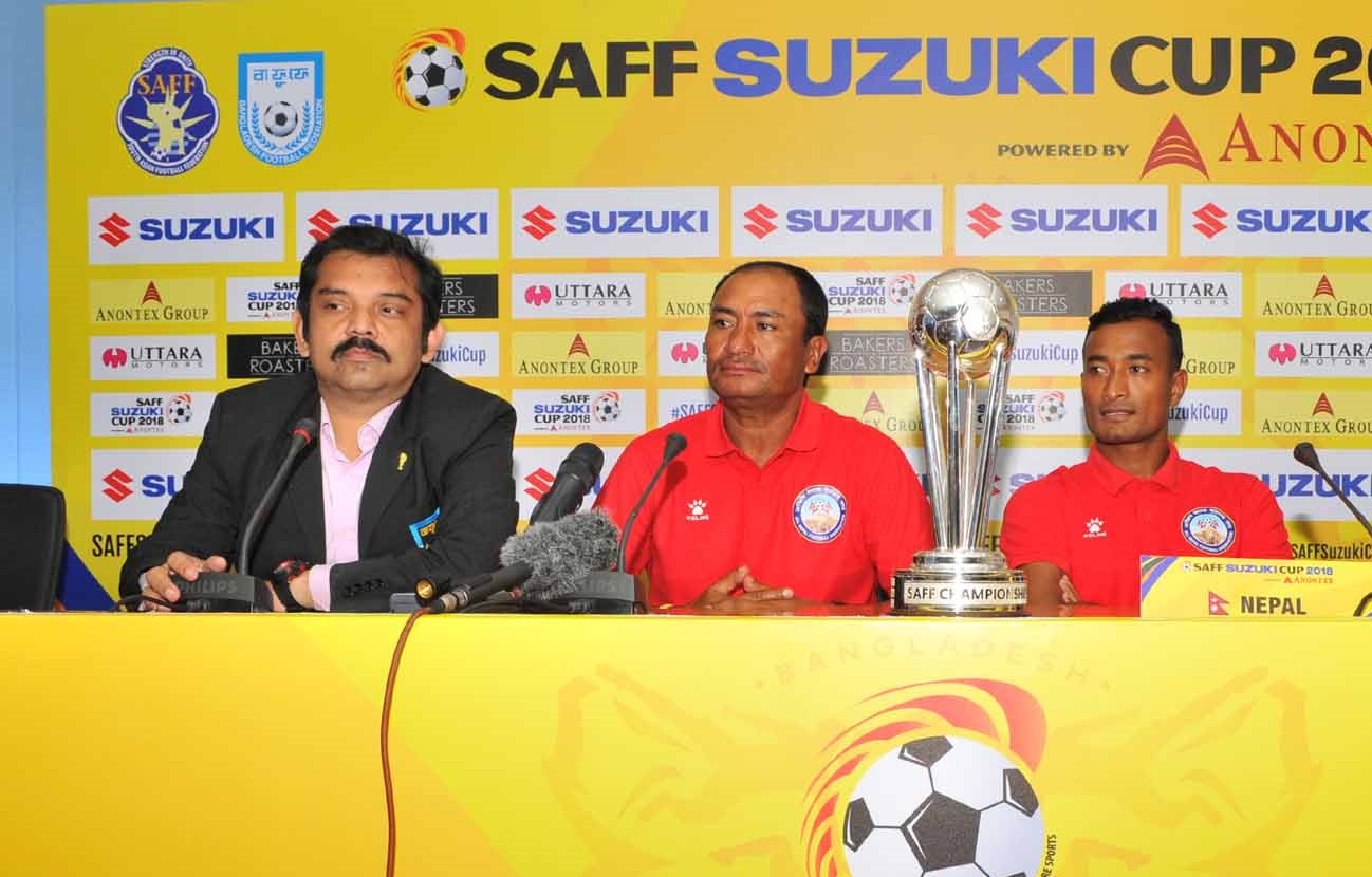Dhaka: Ahead of the start semi-finals of the SAFF Suzuki Cup 2018 on September 12, 2018, a pre-match press conference was held at the BFF House in Dhaka’s Motijheel at 1pm with members of the semi-finalist teams.