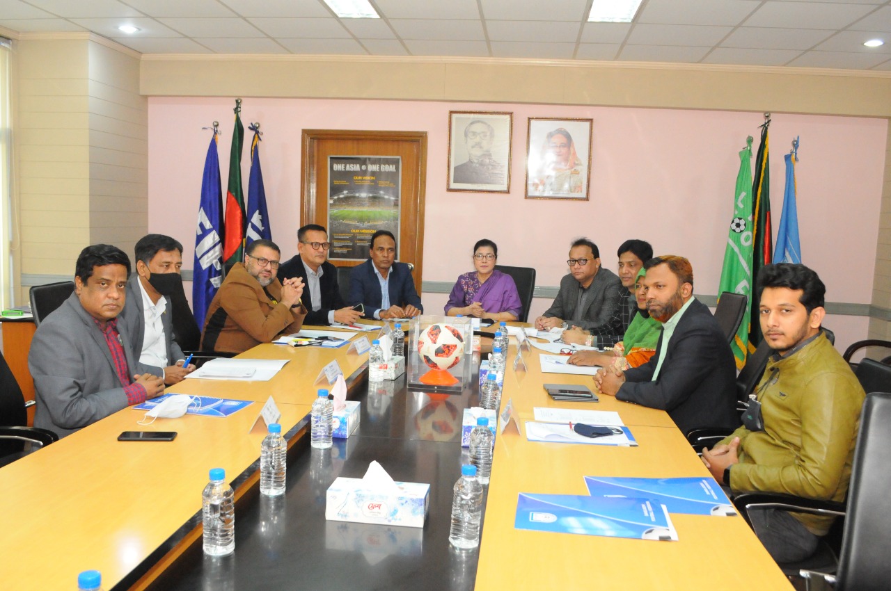 Under the management of South Asian Football Federation (SAFF) and under the supervision of Bangladesh Football Federation, "SAFF U-19 Women's Championship 2021" started on December 11, 2021 at Birshreshtha Shaheed Sepahi Mohammad Mostafa Kamal Stadium in Kamalapur. The final match of the competition will be held on December 22, 2021. The 4th meeting of the Local Organizing Committee formed on the occasion of SAFF-19 Women's Championship 2021 was held today on 21-12-2021 in the meeting room of 2nd floor of BFF building in Motijheel. The meeting was chaired by Mahfuza Akhter Kiran, chairman of the committee.