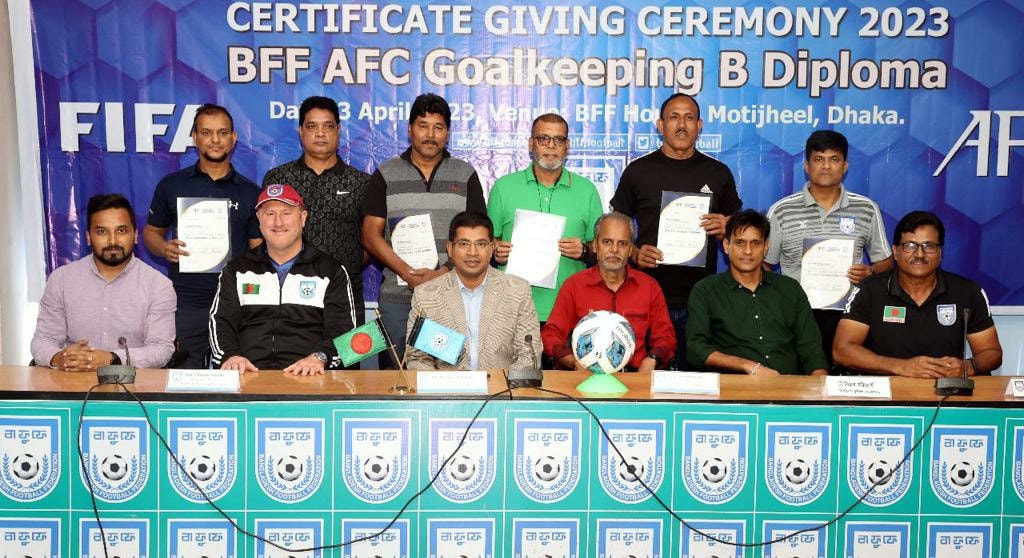 The federation believes that coaching education and development is crucial for developing the next generation of players. Certificates for this coaching development course are awarded to 2 different groups of certificated participants. One of which is the Elite Player-Elite Coach Program specially designed for former national team players and the other is the BFF AFC "B" Diploma Mentoring Course, which has the participation of coaches working in the Professional League, Champions League and various academies of the country. National team players Jamal Bhuiyan, Faisal Mahmood, Mamunul Islam Mamun and Wali Faisal and many other players and coaches were present as participants in the BFF Elite Player-Elite Coach course. Bangladesh Football Federation General Secretary Mr. Abu Nayeem Shohag and Technical Director Paul Smalley were present at the certificate giving ceremony.