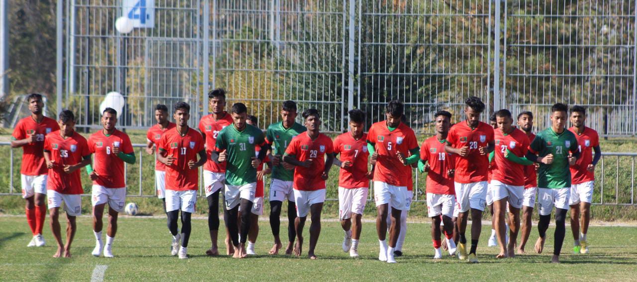 'AFC U-23 Asian Cup Uzbekistan 2022 Qualifiers' is being held in Uzbekistan. Bangladesh, Saudi Arabia, Kuwait and Uzbekistan will participate in D Group Bangladesh U-23 national football team is currently in Uzbekistan to participate in the competition.Today, the Bangladesh U-23 national football team completed a practice session at Bunyodhor FC Academy Training Ground 7 in Uzbekistan from 11:30 am to 1:30 pm. Tomorrow head coach and captain of the Bangladesh team will participate in the official pre-match press conference .The practice session will be held tomorrow from 2:00 pm to 3:00 pm.