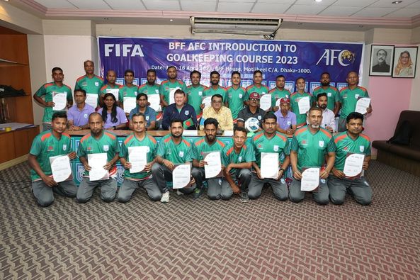 From last (15-04-2023) under the management of Bangladesh Football Federation, 'BFF AFC Introduction to Goalkeeping Course 2023' was organized in the conference room of BFF Bhaban in Motijheel. Under the AFC Coaching Convention, the course was organized for the first time in Bangladesh to create a new goalkeeper trainer.