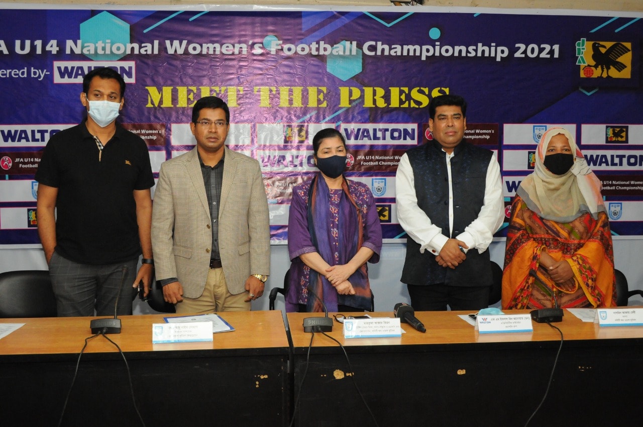 The final match of 'JFA U-14 National Women's Football Championship 2021' under the management of Bangladesh Football Federation is going to start from 01 to 9 September 2021 at Shaheed Muktijoddha Smriti Stadium, Rajshahi (game fixtures attached). A press conference was organized on Saturday, August 28, 2021 at 3:30 pm in the conference room on the 3rd floor of the BFF building to provide detailed information about the championship.