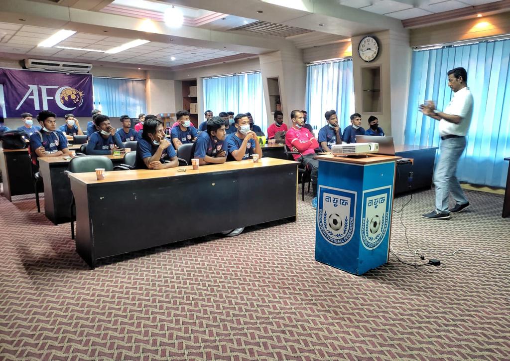 Under the supervision of Bangladesh Football Federation Referees Department, today regarding the latest amendments and important laws of LAWS OF THE GAME 2021-22, was informed to the coaching staff and all players of Fortis Football Club Ltd., Farashganj Sporting Club, Fakirerpool Youngmen's Club, Gopalganj Sporting Club.