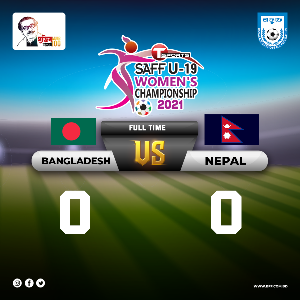 'SAFF U-19 Women's Championship 2021' between Bangladesh U-19 women's football team vs Nepal U-19 women's football team match was held today at 7:00 pm at Bir Shreshtha Shaheed Sepahi Mohammad Mostafa Kamal Stadium in Kamalapur. The match was drawn 0-0 goals.
