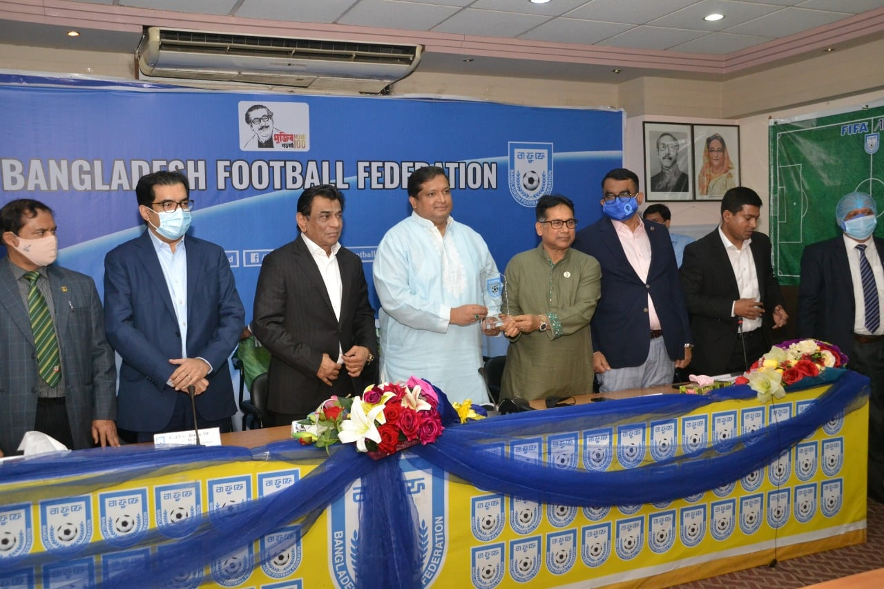 Meeting of Bangladesh Football Federation Executive Committee with Mr. Md. Zahid Ahsan Russel, MP, Honorable State Minister of Ministry of Youth & Sports, Government of People’s Republic of Bangladesh was held today at 12:30 pm of Thursday 7th Januaray 2021 at the second floor of Board Room of BFF House, Motijheel, Dhaka. Honorable President of BFF Kazi Md. Salahuddin, Senior Co-President Mr. Abdus Salam Murshedy-MP, Vice President Mr. Md. Ataur Rahman Bhuiyan (Manik), Vice President Mr. Mahiuddin Ahmed Mahi, Member of FIFA Council, BFF & AFC Mahfuja Akter Kiron, BFF General Secretary Mr. Md. Abu Nayeem Shohag were present in the meeting. Honorable Secretary of the Ministry of Youth and Sports Mr. Md. Akhtar Hossain, Additional Secretary (Sports) Mr. Md. Abdul Karim, NDC, Hon'ble Secretary (Additional Secretary) of National Sports Council Md. Masud Karim, Director General of BKSP Brigadier General Md. Rashidul Hasan, NDC, AFWC, PSC, Mr. Md. Mojibur Rahman, Private Secretary to the Hon'ble State Minister for Youth and Sports and Mr. Sohail Ahmed, Personal Secretary of the Secretary, Ministry of Youth and Sports were also present among others.