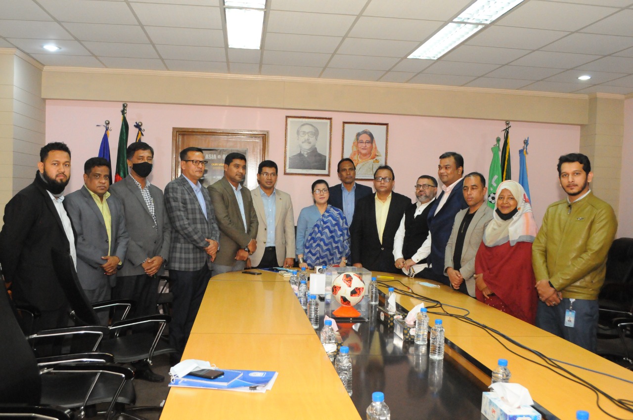 'SAFF U-19 Women's Championship 2021' competition was organized by South Asian Football Federation (SAFF) and Bangladesh Football Federation (BFF). The competition was held from 11th to 22nd December 2021 at Bir Shreshtha Shaheed Sepahi Mohammad Mostafa Kamal Stadium in Kamalapur. 5th and last meeting of the 'Local Organizing Committee' formed on the occasion of 'SAAF U-19 Women's Championship 2021' was held today in the meeting room on the 2nd floor of BFF building in Motijheel. This meeting discussed in detail the various issues of the recently concluded 'SFAF U-19 Women's Championship 2021'. This meeting was chaired by Chairman of the Committee Mahfuza Akhter Kiran.
