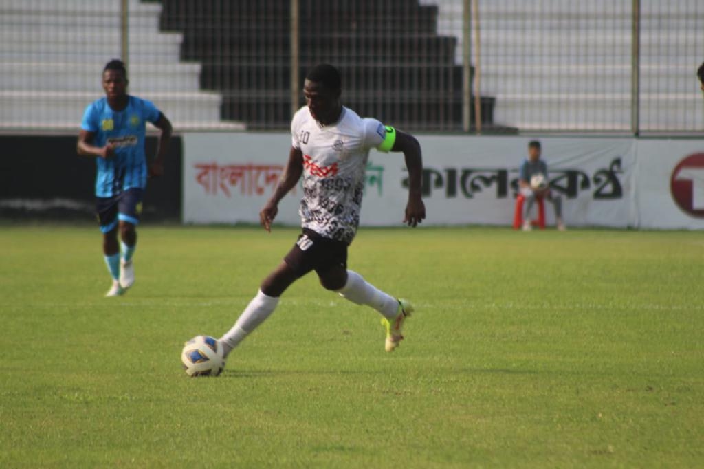 Today's match of 'TVS Bangladesh Premier League 2021-22' was held between Mohammedan SC Ltd. Vs Chittagong Abahoni Ltd.. The match was drawn by 3-3 goal. For Mohammedan SC Ltd., Souleymane scored the first goal in the 2nd minute, the second goal in the 67th minute and the third goal in the 90+5 minute. For Chittagong Abahoni Ltd., Sakhawat Hosen scored first goal in the 12th minute, the second goal in the 26th minute and Thankgod scored the third goal from penalty in the 59th minute