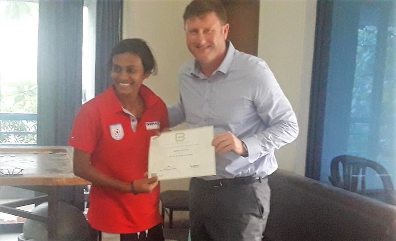 National team skipper Sabina, who aspires to build a coaching career after finishing her playing career, completed her B certificate course under Paul Smalley himself during the first ever AFC B Certificate Coaching Course arranged by the BFF.