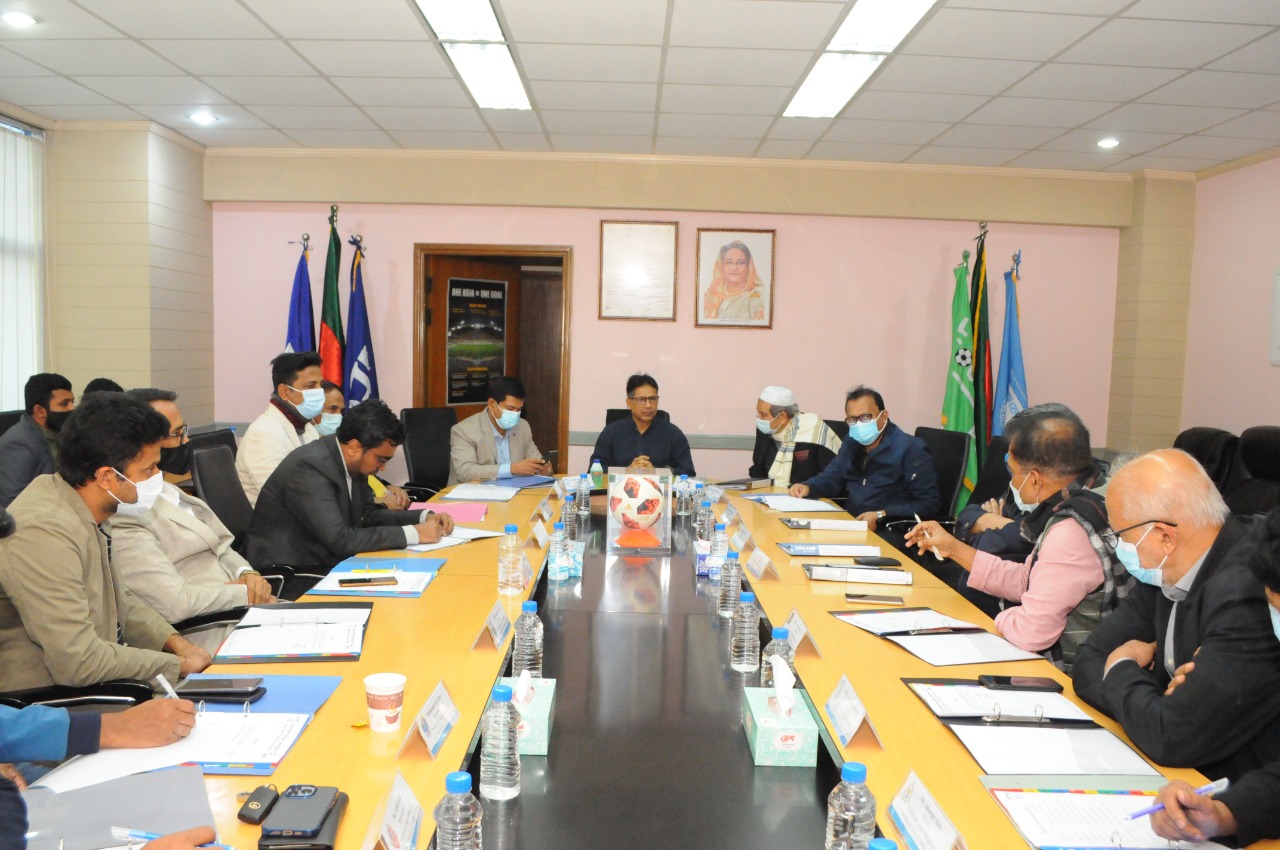 The 2nd emergency meeting of the ‘BFF Professional League Management Committee’ formed on the occasion of the 2021-22 football season, was held today, 29-01-2022 at 3:00 pm on the 2nd floor boardroom of BFF building. The meeting was chaired by the Chairman of the Committee Mr. Abdus Salam Murshedy, MP. The meeting was also attended by Deputy Chairman of the Committee and General Secretary of BFF Mr. Md. Abu Nayeem Shohag and other members.