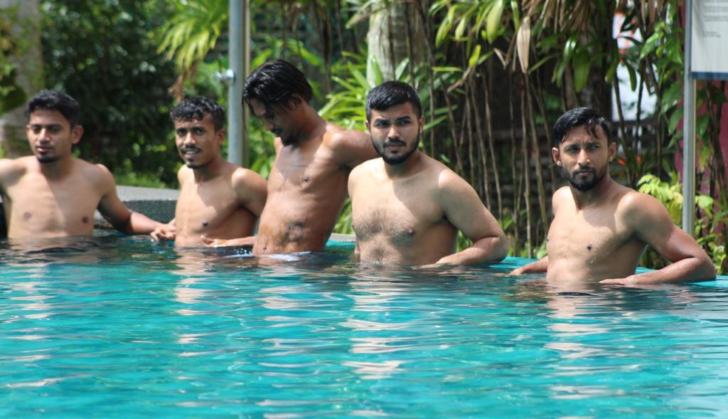 The Bangladesh national football team participated in the gym, swimming and ice bath at the team hotel