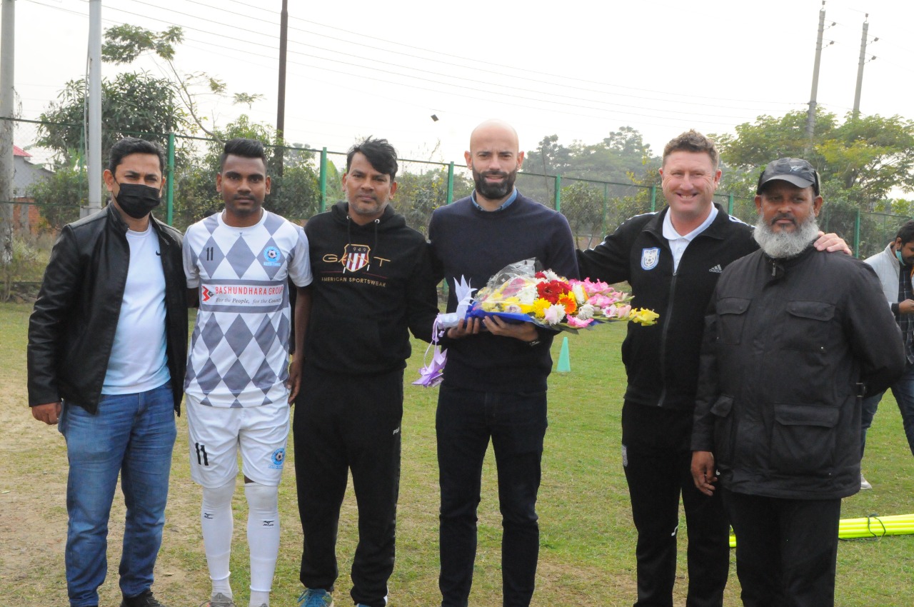 The head coach of Bangladesh national football team Spanish citizen Mr. Javier Fernandez Cabrera Martin Penato, Assistant Coach of Bangladesh National Football Team Mr. Masood Parvez Kaiser and Technical Director of BFF Mr. Paul Thomas Smalley observed the training activities of the players of North Baridhara Club today at 3:00 pm and met the officials and players of the club.