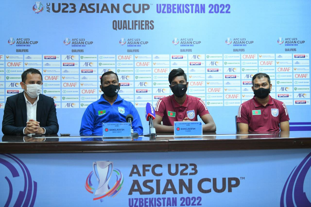 'AFC U-23 Asian Cup Uzbekistan 2022 Qualifiers' are being held in Uzbekistan. Bangladesh U-23 national football team is in D group. The official pre-match press conference was held today at 11:30 am Uzbekistan time (12:30 pm Bangladesh time). Head coach and team captain of Bangladesh U-23 national football team participated in the press conference. The Bangladesh U-23 national football team expresses hope to win the tomorrow match against Kuwait U-23 national football team at a press conference.